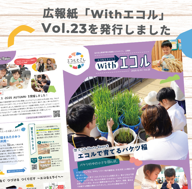品川区立環境学習交流施設「エコルとごし」は、自然豊かな戸越公園内にあり、体験型展示や多彩なイベント・講座で、環境を楽しみながら学ぶことのできる施設です。また、地域における憩いと交流の場としてご利用いただけます。
