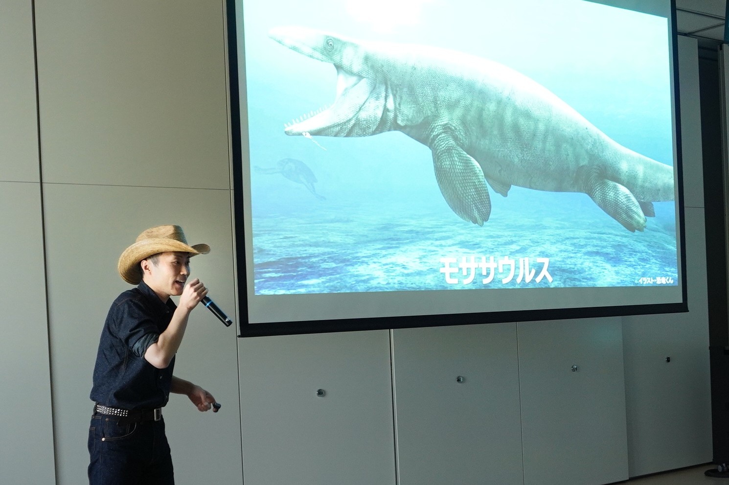 エコルとごしで週末に上映しているオリジナルムービー『エコルといっしょに考えよう!SDGs』にもご出演いただいた恐竜くん(田中真士さん)を講師に迎え、トークショーを行いました。